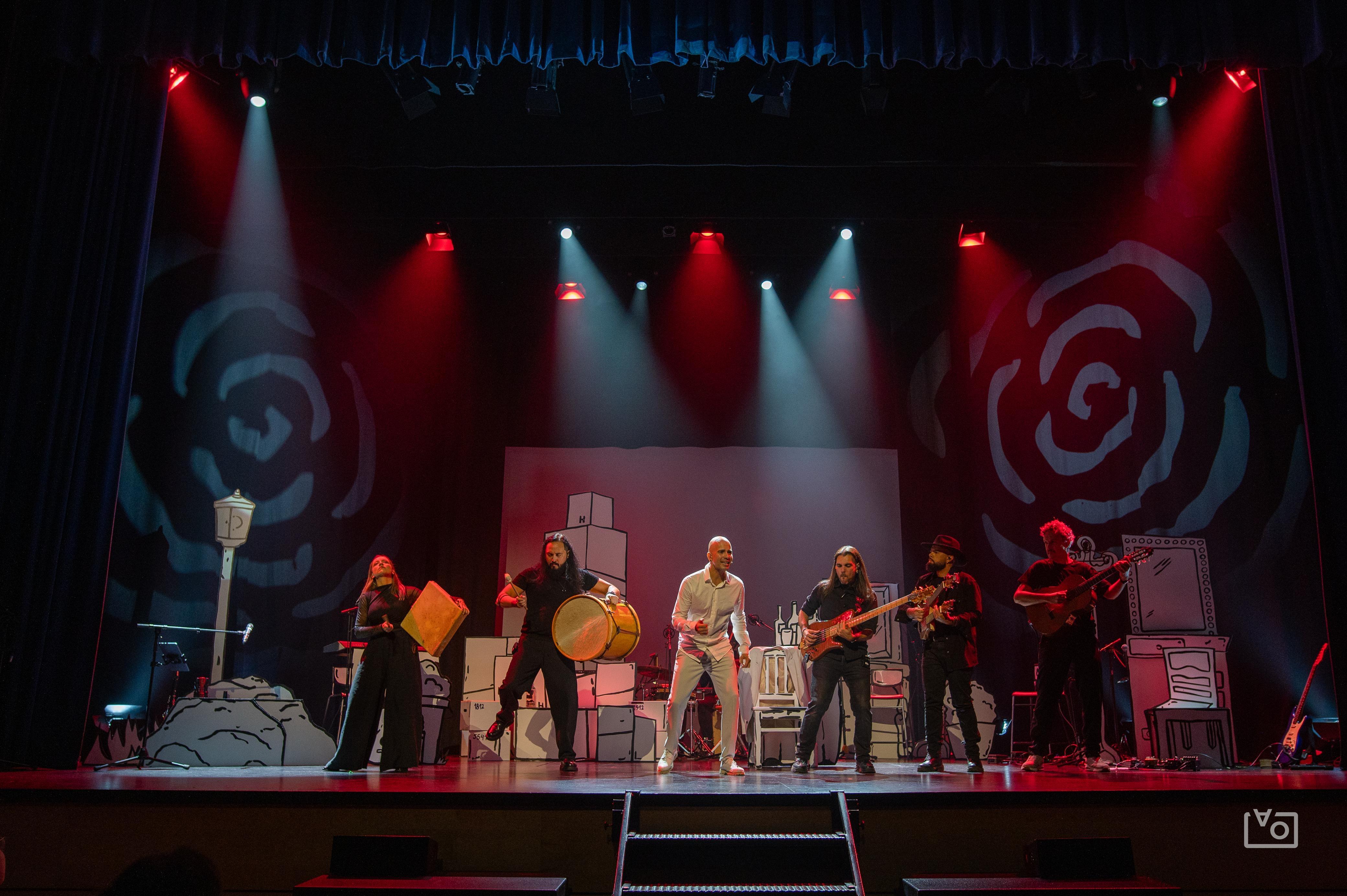Sobre el escenario, la banda demostró una vez más su consolidada trayectoria y solvencia artística, aportando músculo musical y sensibilidad a cada pasaje del montaje. Un elenco que arropó al artista con complicidad y excelencia interpretativa, integrado por Totó Noriega (percusión), Juanka Trujillo (bajo), Pablo Queu (guitarra), Elvis Pescosa (piano), Althay Páez (timple) y Ana Gil (clarinete y coros).